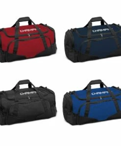 The ultimate carry-all equipment bag from Champro is designed to be the all-in-one bag for team equipment, balls, and accessories. Made out of 600D polyester fabric, this bag is water-resistant and is available in four different colors. Quickly access your gear using the zippered D-shaped opening or the exterior front pocket designed for smaller and personal items. The flexible PE bottom insert provides extra durability on all surfaces and allows the bag to fold flat for easy storage when not in use. Carrying this bag is a breeze with either the wrap-around handles or the dual-side handles.