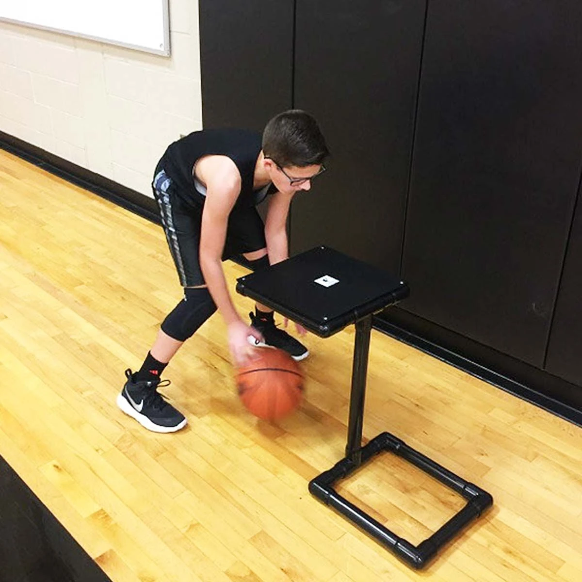 The Power Dribble is a revolutionary basketball training aid for teaching proper dribbling technique. This dribble aid teaches keeping the basketball low and under control while keeping your head up, not down on the ball, enabling you to see the whole floor, the basket and your teammates more effectively. The Power Dribble reinforces anticipation on where your next dribble will go, ultimately providing a better feel for the ball. The Power Dribble is easy to set up and can be adjusted to two height levels. Besides teaching you better dribbling, the Power Dribble is also great to use as a defender for various basketball training drills.