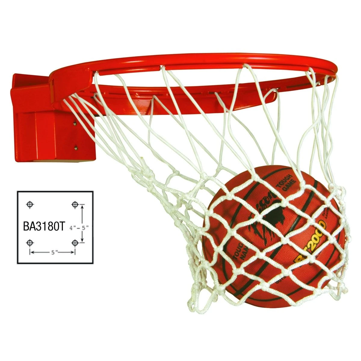 The only true 180 breakaway goal with a positive lock release mechanism. From the left baseline, right baseline, down the lane or any angle in between, the Bison Baseline Universal Prep 180 Breakaway Goal will provide consistent breakaway pressure even during the most aggressive slam dunk action. This is the most technologically advanced breakaway goal available today with the ring assembly floating on 13 hardened chromium steel ball bearings for smooth flexibility from any direction. The pressure release mechanism is field adjustable to insure the preferred feel and adherence to NCAA ring testing rule for the life of the goal.