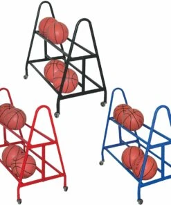 The Champion Basketball Ball Rack measures 41″L x 17″W x 53″H and has three shelves holding 16 basketballs and volleyballs. This basketball rack is constructed with a heavy, chrome-plated steel tube and non-marking casters. This rack is the easiest way to store and transport basketballs and volleyballs.