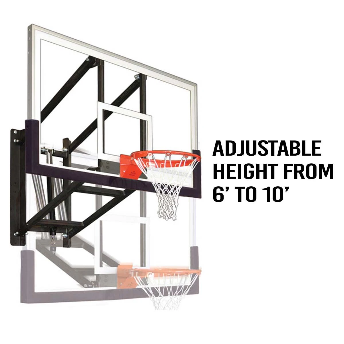 The WallMonster from First Team is a convenient and cost effective choice when an adjustable wall mounted basketball unit is needed. Great for all ages, the WallMonster is available with either an acrylic or tempered glass backboard and can be adjusted from 10’ down to 6’. The included handle and rim height indicator allow for easy height adjustments from the ground without the use of a ladder thanks to the spring-aided mechanism. Constructed out of steel and finished with a sleek black powder coat, the WallMonster is an excellent choice for either indoor or outdoor basketball courts. For 48” offset installations, the rim height is adjustable from 10’ down to 7.5’ while a 36” offset installation can lower all the way down to 6’. See “Additional Info” tab for installation instructions, specifications, and drawings.