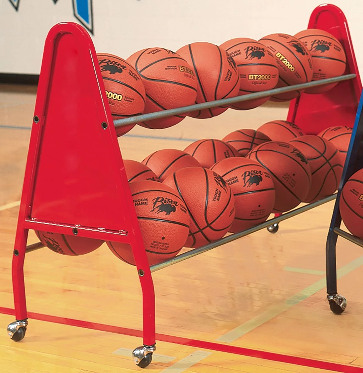 Bison’s heavy-duty ball cart was designed to be the last ball cart you ever need to buy. Β This cart is compatible with both men’s and women’s basketballs and has 4 floor-friendly casters for easy mobility. Β Optional lettering is available to customize your cart withΒ your team name.