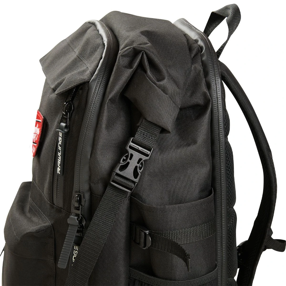The Rawlings Coaches Backpack measures 15.75″ H x 11″ W x 9″ D and can securely transport a laptop or tablet with its padded, felt-lined sleeve. This Rawlings bag can also hold either two bats or water bottles in its side compartments, shoes in its separate interior compartment, and valuable items in its water-resistant storage pockets. This backpack sports a ventilated back panel along with durable molded and lightweight shoulder straps for unmatched comfort and airflow when carrying. Not to mention the bag’s high volume roll compartment design, this Rawlings coaches backpack is highly suitable for traveling to the next game or tournament.